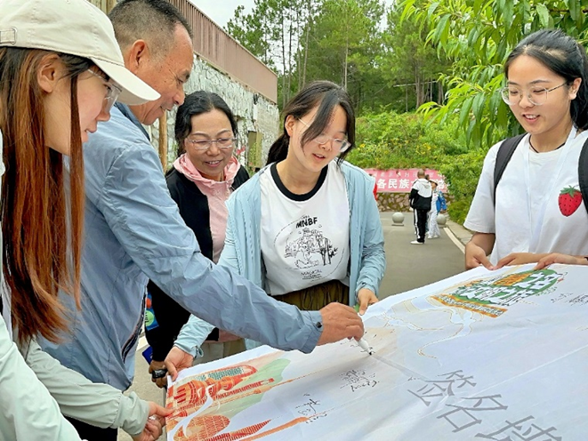 Carrying out Rural Handicraft Courses The team not only promotes sustainable development in practice but also wants to promote this spirit in the classroom, promoting the achievement of the goal of quality education (SDGs4). Going deep into the grassroots community, insisting on the comprehensive development of morality, intelligence, physical fitness,aesthetics, and labor, the team led local children to learn about sustainable lifestyles through specific cases, multimedia presentations, classroom interaction, and handicraft making, enhancing global citizenship awareness, and carried out the "Turning Waste into Treasure" handicraft course. The children were very active and said that the class content was rich and interesting. 03 Researching Rural Areas