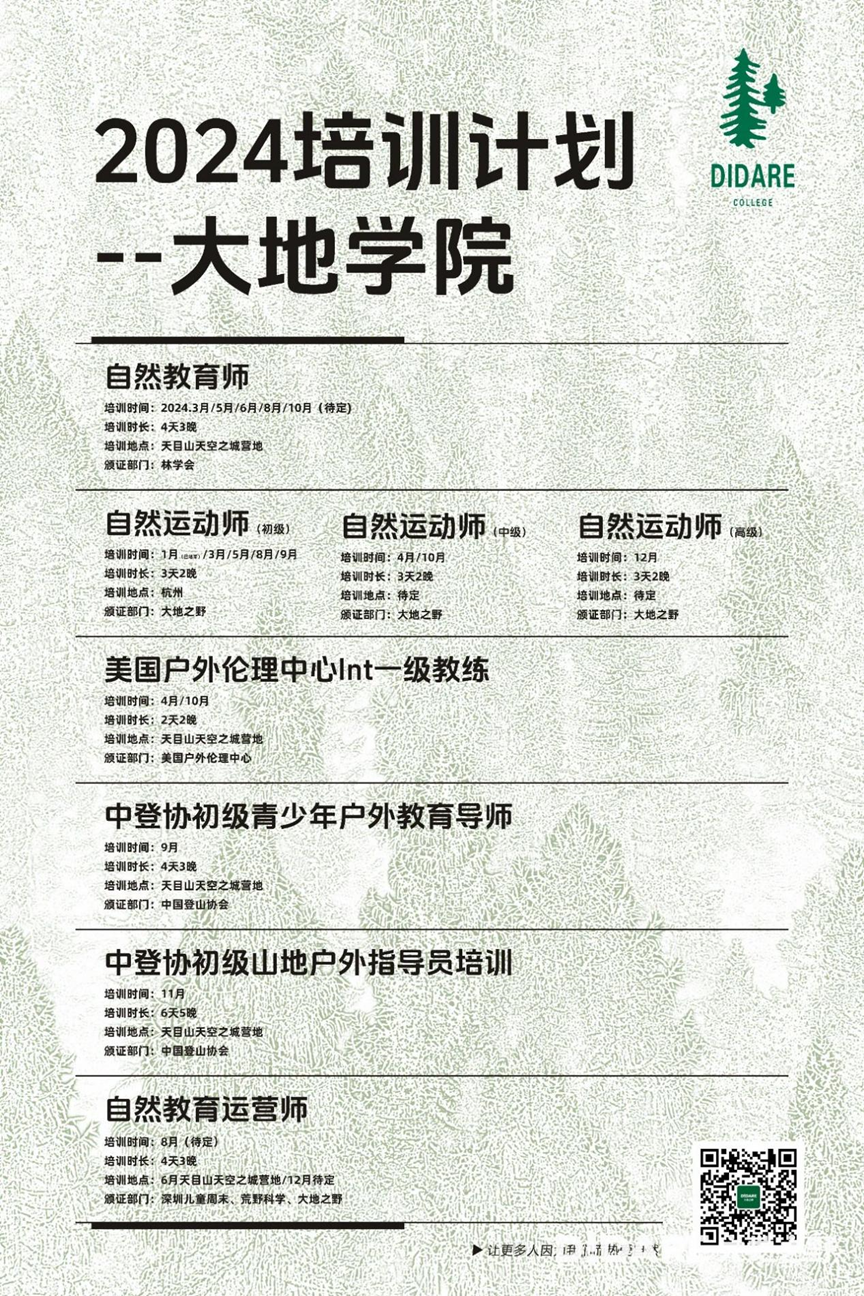 Nature education is an effective method for people to understand and comprehend nature, and it is an effective way to promote the formation of a society that respects, conforms to, and protects nature. Nature education is an educational process that takes the natural environment as its background and uses systematic and effective methods to guide people to feel and appreciate nature, understand and recognize the importance of nature to humanity, recognize the significance of nature conservation, and stimulate their willingness to take action or participate in conservation. Natural education teacher is a professional profession that possesses knowledge, qualities, and abilities in natural education, and meets the basic professional requirements and requirements. We are professional talents who promote the sustainable and healthy development of nature education. The three major benefits of participating in the National Natural Education Teacher Training Course are: 1. Enhance one's own abilities and play aprofessional role in summer camps; 2. Gather industry resources and create aplatform for cooperation and exchange within the same industry; 3. Obtain the certificate of natural educationteacher training and give priority to applying for the national naturaleducation base; National Nature Educator Training Course, Earth'sWilderness Phase 2 I. Organizational structure Issuing unit: Chinese Forestry Society Host: Hangzhou Dadi Zhiye Education Technology Co., Ltd; Beijing Campsite Education Consulting Co., Ltd II. Training Overview (1) Training time: August 16-20, 2024 (2) Training location: Tianmu Mountain, HangzhouCity, Zhejiang Province, China (3) Training target: staff members of various nature reserves across the country; Personnel related to the construction unit of the natural education base; Education workers engaged in teaching natural science courses in primary and secondary schools; Personnel engaged in research and education, camp education and other related industries; Researchers involved incomprehensive practical activities and research projects; College students who volunteer to engage in nature education, etc; Parents who love nature education. (4) Training objective: To learn the basic knowledge of natural education, master conventional teaching techniques and safety risk management. Cultivate practical skills in curriculum design and teaching, andbe able to plan and implement natural education courses with distinctive andeducational significance according to different objects and types of places. Understand the development and prospects of the natural education industry. (5) Training content: Special study on natural education, including outdoor natural education practice, natural art, birds,insects, curriculum design, night observation, wilderness survival, outdoor safety, etc. Natural Education Curriculum Design and Practice: Experience diverse natural education courses, master curriculum design and teaching skills, and work with team members to design a complete curriculum. (6) Training process: ① Submit registrationinformation → ② Confirm payment, successful registration (deadline on August10th, subject to remittance time, starting from 20 people and ending at 40people) → ③ Online course learning in August → ④ Offline training from August16-20 → ⑤ Complete the assessment and issue a certificate of natural education teacher training. Online courses focus on the fundamental theories and knowledge of natural education. Upon completion of the course and passing the exam, one can obtain a qualified (electronic) certificate for online training and qualify for "offline training". After participating in offline training and passing the assessment, one will receive a "Nature Educator" training certificate issued by the Chinese Forestry Society.This certificate (student record) will be registered and managed by the ChineseForestry Society (National Natural Education Headquarters). Registration forthe training will be accompanied by a full day event on August 20th. Cost Description: Training fee: 3480 yuan/person, including insurance, training, teachingmaterials, and other expenses. The training, accommodation, and round-trip transportation shall be borne by the trainees themselves.