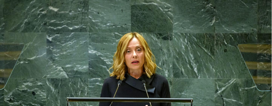 Prime Minister Meloni of Italy addressed the General Debate of the General Assembly The annual high-level debate of the United Nations General Assembly is arguably the world's highest-level diplomatic forum, where heads of state, government and top diplomats address and debate issues that matter most to their countries. As in previous years, armed conflicts have been debated the most and high-profile, including the situations in Lebanon, Gaza, Ukraine and Sudan; Again, as in previous years, the forum is dominated by men. Starting today, UN News will talk to you about women leaders and their perspectives that are often overlooked in high-level debates through the Women's Stories blog series. The "Song of the Italy" you hear now is the national anthem of Italy. Italy's right-wing conservative party, Brothers of Italy, was inspired by the song. However, Giorgia Meloni, the ·leader of the Brothers of Italy party, is a woman, and she has been the Italy prime minister since 2020, the first female prime minister in Italy history. Meloni has been prime minister for almost four years and is still in the prime of life, only 47 years old this year. She came from a humble background, but she joined the youth movement at the age of 15 and later worked as a journalist and entered politics. Regardless of what is said about her views and style of governance, Meloni declares herself a mainstream conservative.